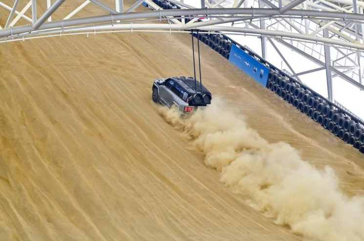 次に外交官たちは、垂直高さ29.6メートル、勾配28度を誇る「世界で最も高く、最大規模の砂地走行テスト施設」としてギネス記録に2件認定されている玄天砂丘エリアへ移動しました。