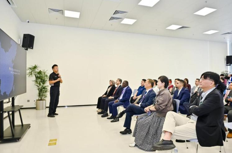 BYD鄭州オフロードレーシングサーキットの訪問は、独自の技術共有セッションで締めくくられました。スタッフは外交官たちに、当日体験した内容の背後にある技術について詳しく紹介し、「天眼」アシスト運転システムやイースファンの現地駐車システムを説明しました。注意深く聞き終えた後、外交官たちはBYDが独自に開発した先進の電動化・知能化技術および製造プロセスを展示する展示ホールも視察しました。